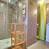 - Bathroom : a bathroom with a shower, a towel dryer and a suspended toilet.
