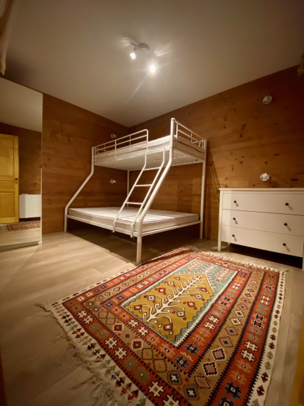 - Beds : one double room (bed 140), one room with bunk beds (1x90 & 1 x140). Bedding equipped with comforters.