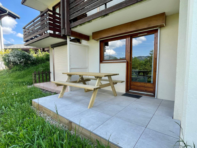 In the village of Notre Dame de Bellecombe, apartment of 27m² for 4 travelers. Located on the ground floor, it benefits from a south-west terrace with a view on the forest and the surrounding mountains.