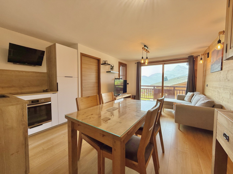The village of Notre Dame de Bellecombe is ideally located in the heart of the Espace Diamant. With its 192 km of slopes and its 6 linked village resorts (Notre Dame de Bellecombe, Flumet, Praz sur Arly, Crest-Voland/Cohennoz, Les Saisies, Hauteluce), everyone will find what they are looking for to make the most of their vacations.