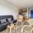 Built-in kitchen with 2 hotplates, refrigerator, microwave oven, dishwasher, kettle, toaster and coffee maker.