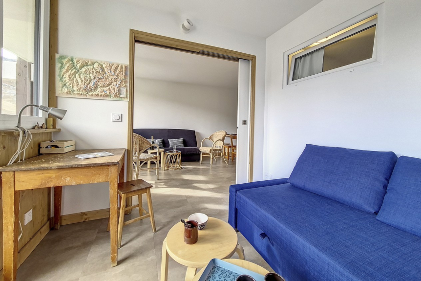 2-room apartment of 36 m2 with a cabin renovated in 2020 for 6 people. It has a south-facing balcony.