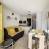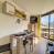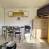 Open kitchen equipped with 4 ceramic hobs, fridge, conventional and microwave ovens, kettle, toaster and coffee maker.