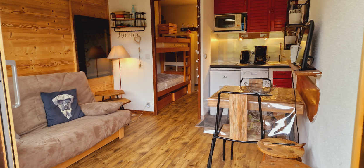 Very nice studio of approximately 24m² located in the Les Charmettes residence, close to the slopes and the resort center, situated on the 2nd floor without elevator.