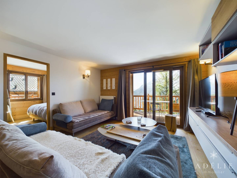 Balcony exposed South, nice view on the mountains.