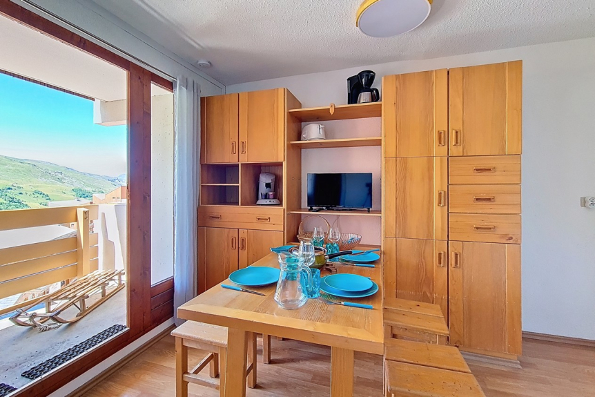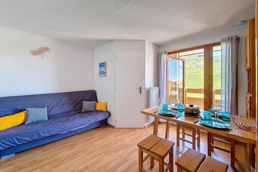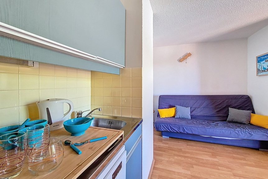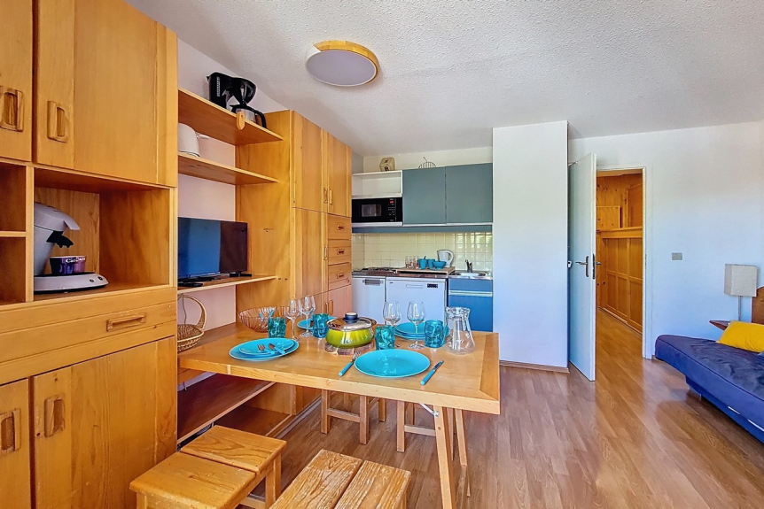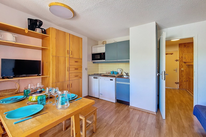 2-room apartment 28 m² for 4 people with west-facing balcony. Located on the 4th floor with elevator. The apartment is equipped with electric shutters. It is rented with a parking space.