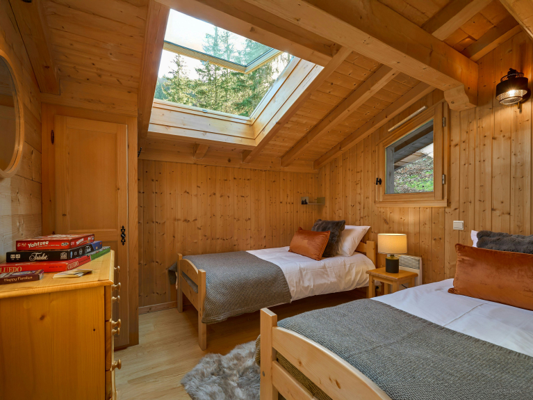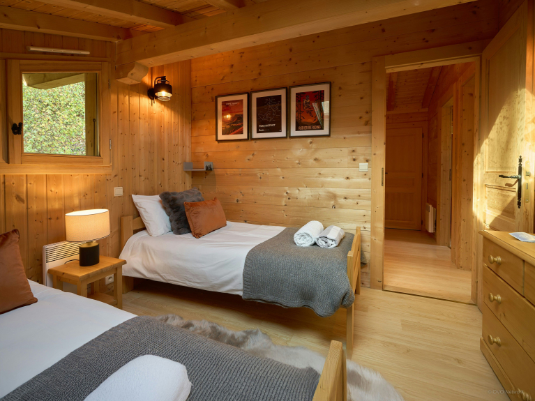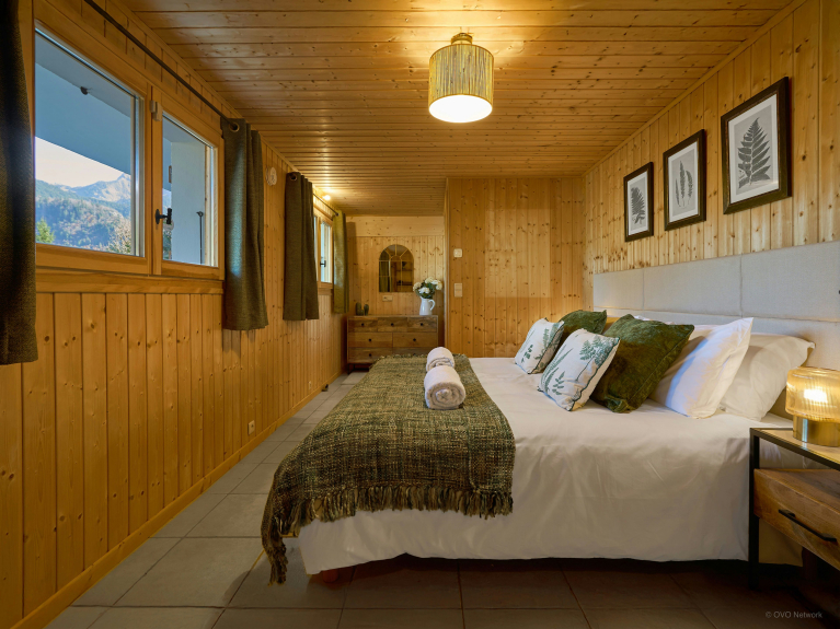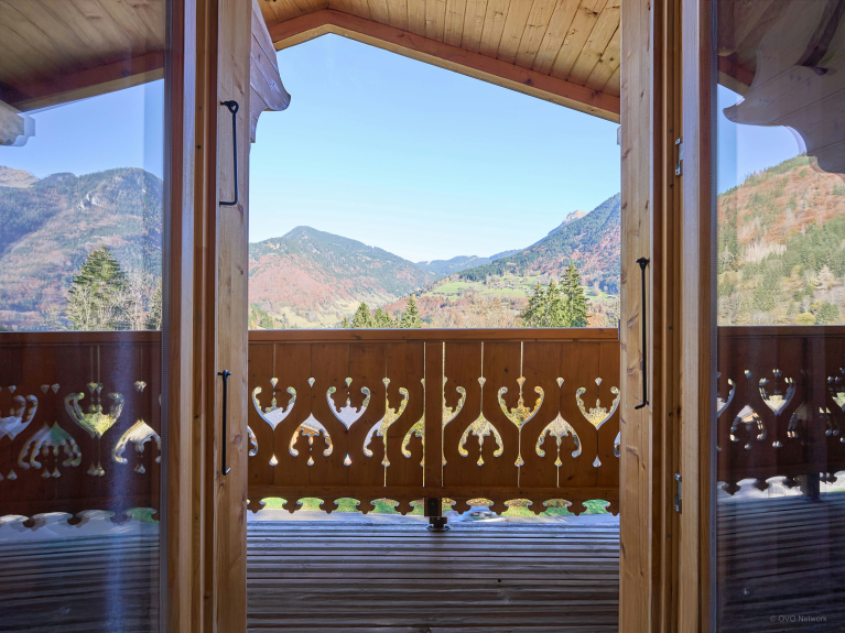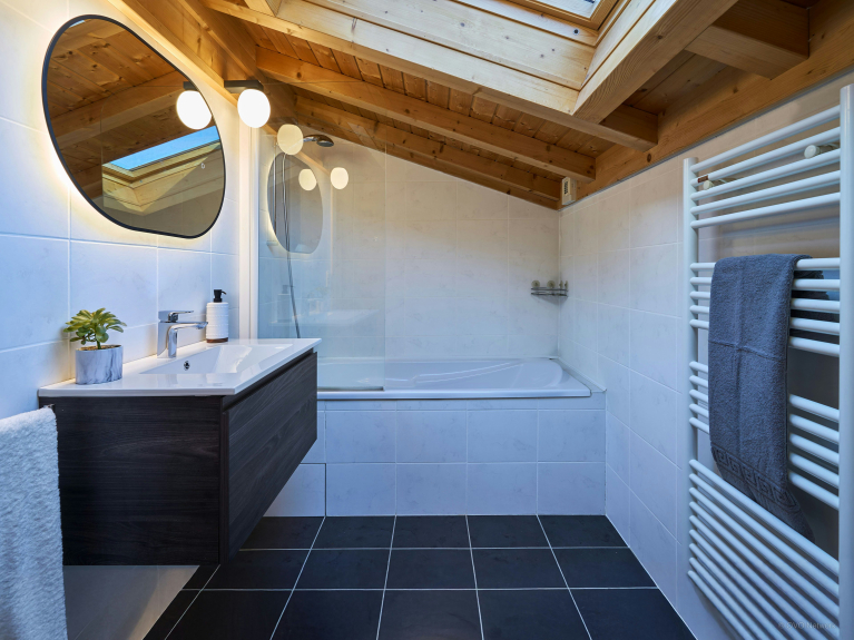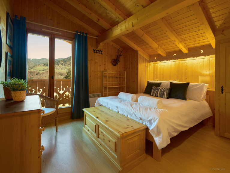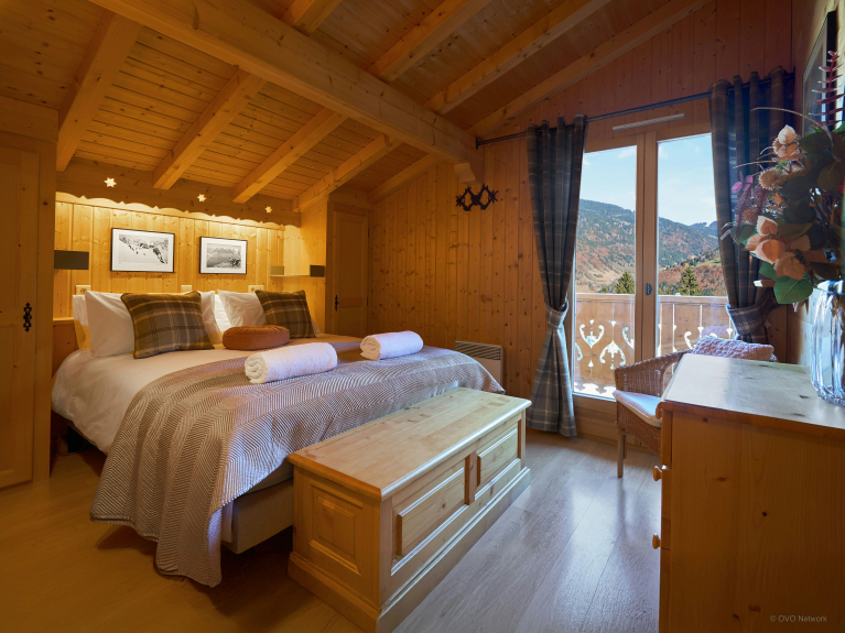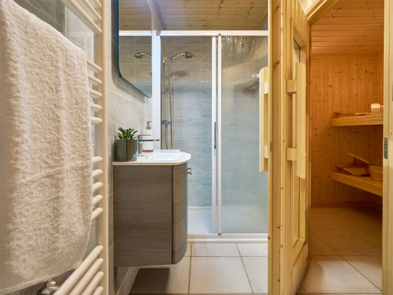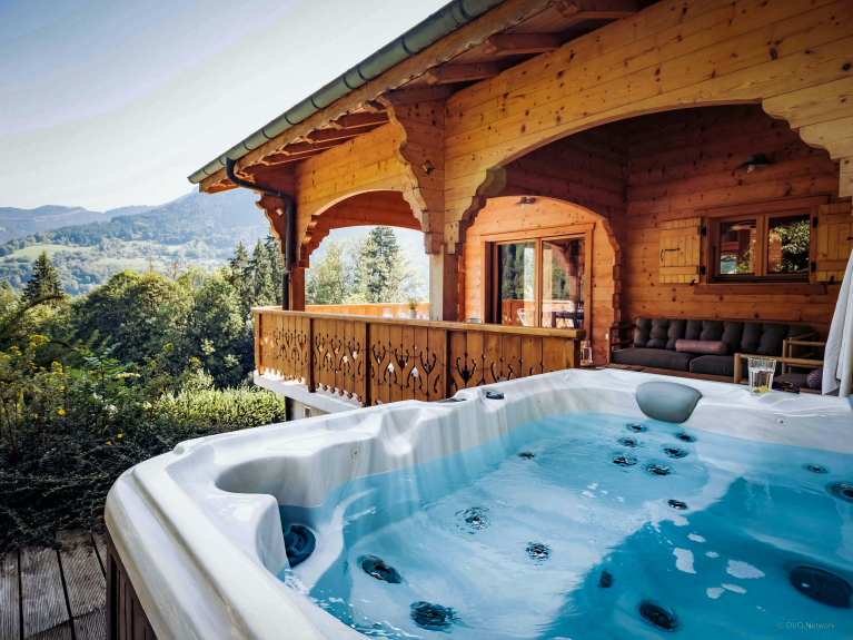 With its splendid alpine setting, Jacuzzi, sauna and several spacious terraces, this chalet is a great base for discovering this region. There are two double bedrooms with balconies, a third with en-suite shower room, and a bedroom with two single beds. There's a bathroom on the upper floor and another shower near the sauna on the garden level.