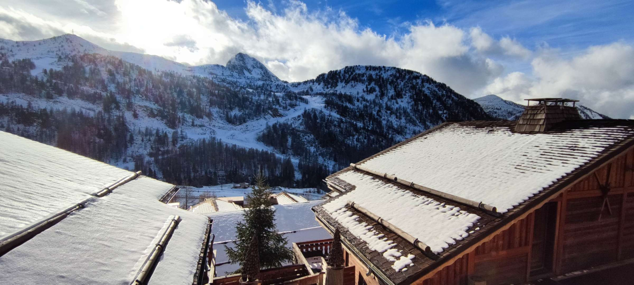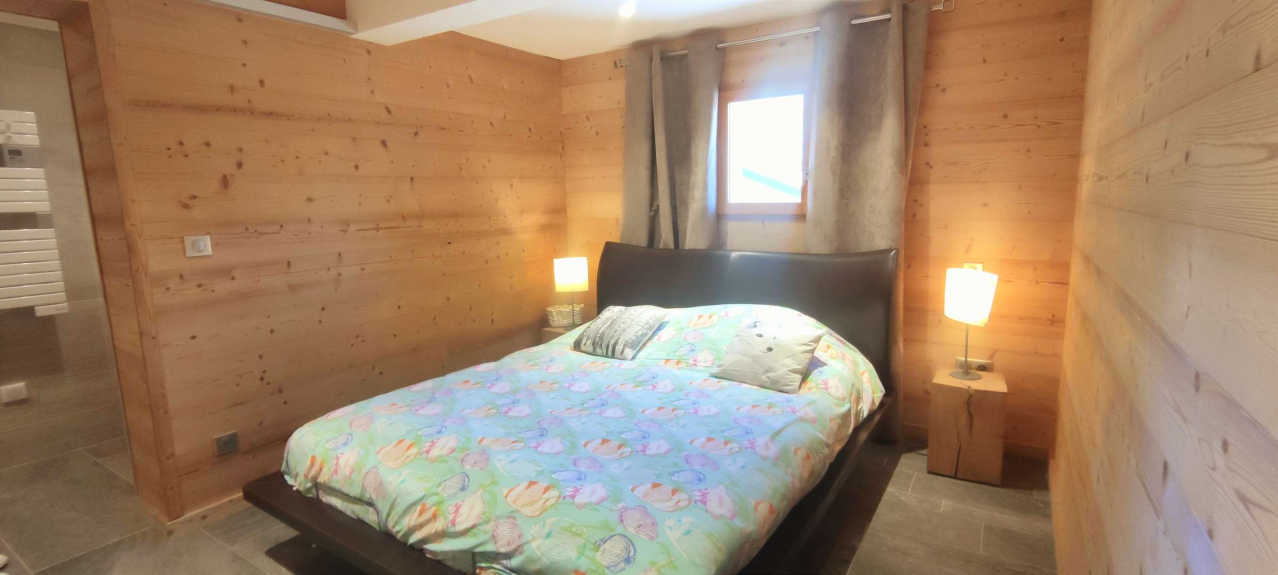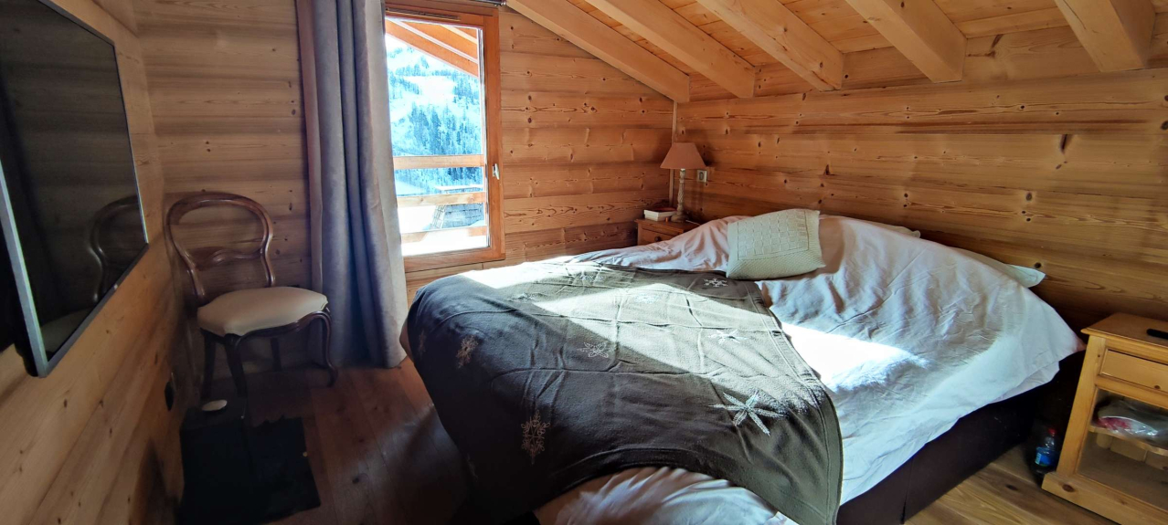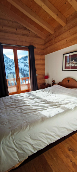 CM26 Magnificent 150 m² detached chalet, fully renovated to a high standard, comprising 5 bedrooms, 2 bathrooms, 2 shower rooms, lounge/dining room with fireplace and terrace, open-plan kitchen, located on the heights of the resort, with panoramic views of the slopes and mountains. Garage. NO SMOKING, NO PETS