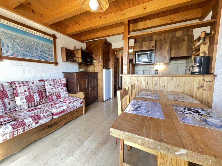 40 m² duplex apartment on the 2nd floor of the L'Amplitude residence. Perfect for up to 4 people, it offers a pleasant and practical living environment, just 300 meters from the village center and 100 meters from the Espace Diamant ski slopes. Its location offers exceptional views of the Val d'Arly mountains.
