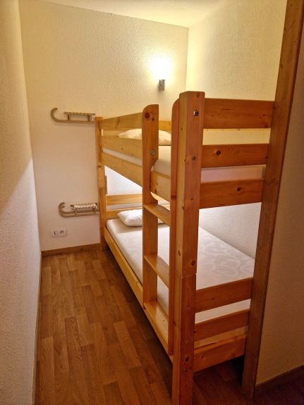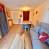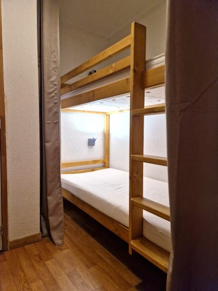 - A mountain area (windowless) with 2 single bunk beds, separated from the living area by an opaque curtain.