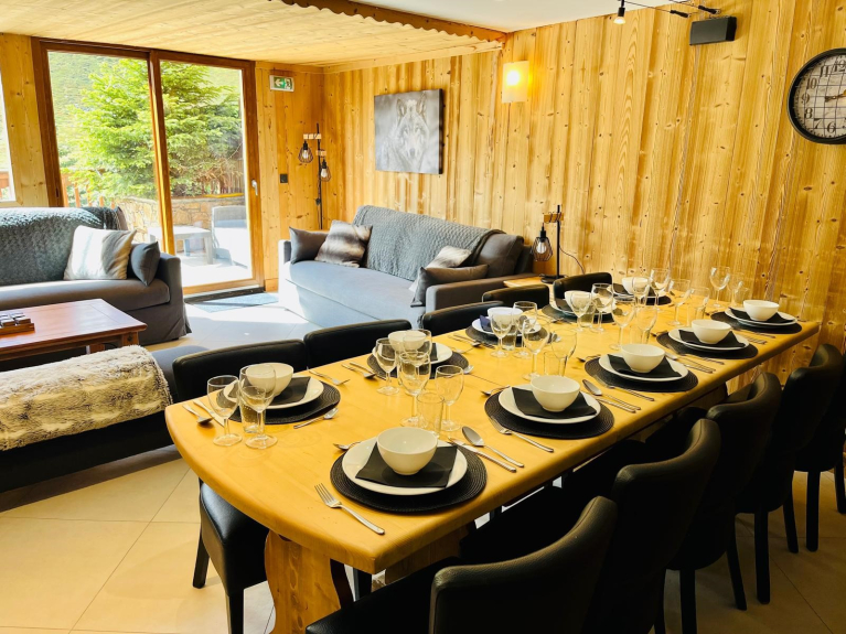 Chalet Delphine is located at the foot of the Bruyères gondola. It sleeps 14. It has a terrace with jaccuzzi and spectacular mountain views.