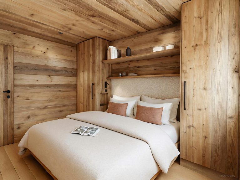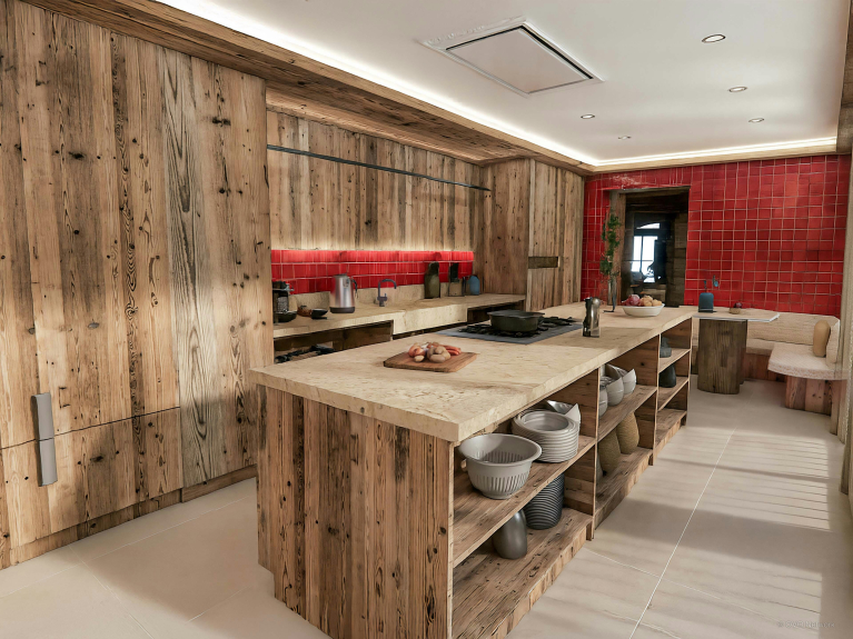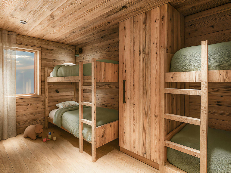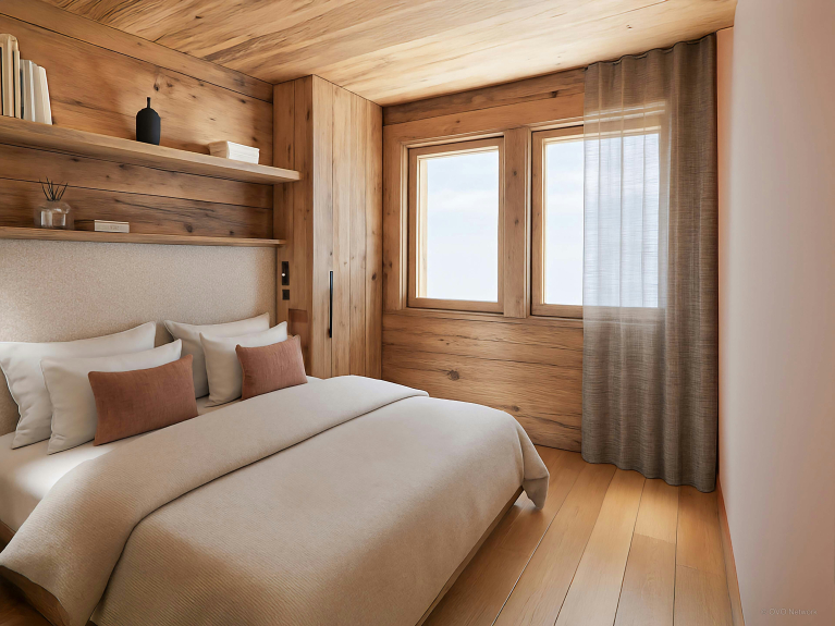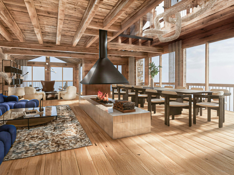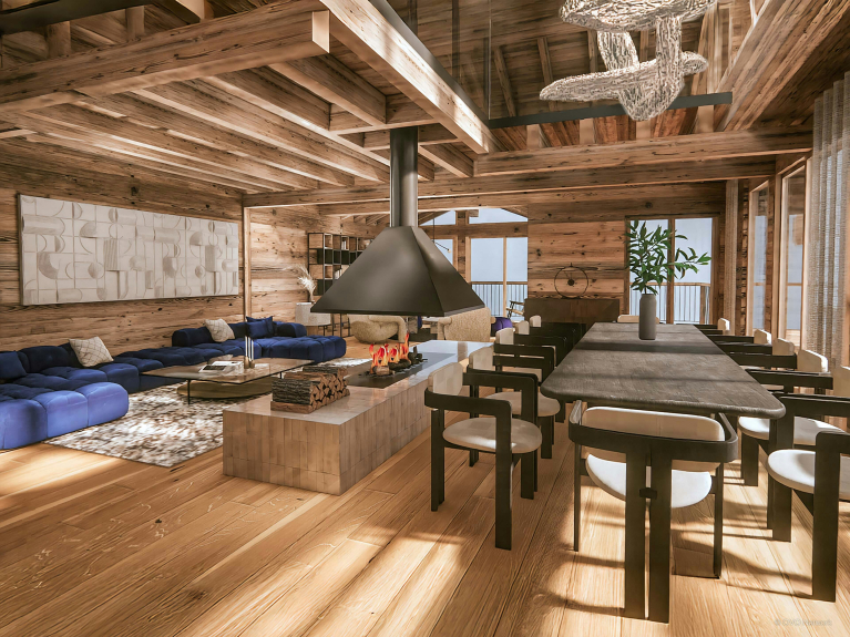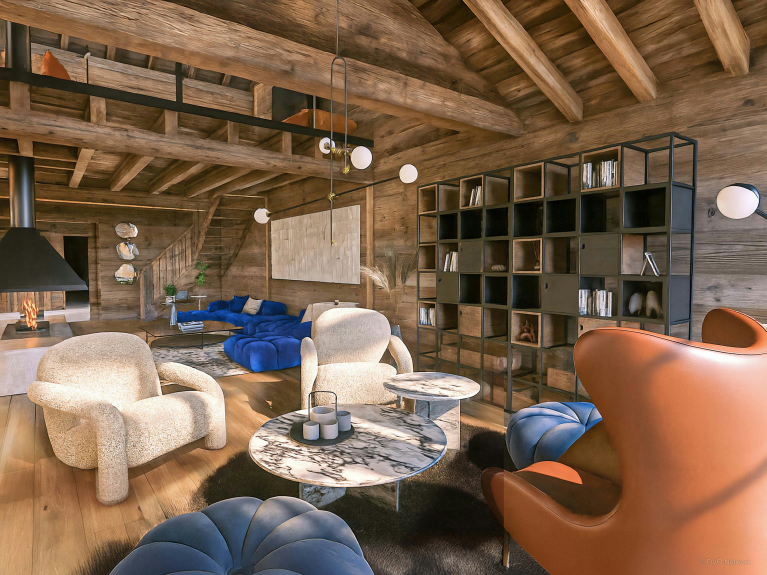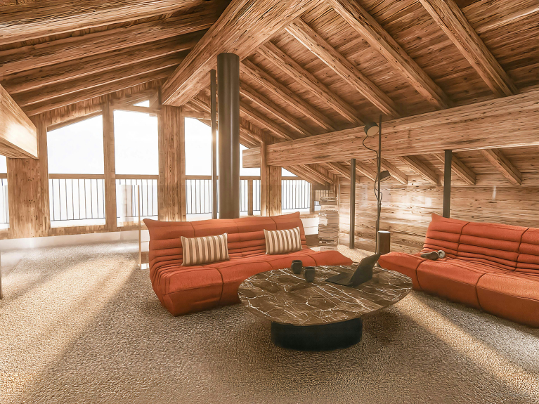 This chalet is previewed with realistic 3D renderings. The final decoration may change slightly. Photos will be added in the fall, when the chalet is finished.
