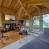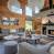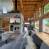 The living room is bathed in light thanks to numerous windows and bay windows. The lounge area is generous and comfortable, with two large sofas facing a fireplace and large-screen TV. A modern, fully-equipped kitchen with countertop opens naturally onto the rest of the room.