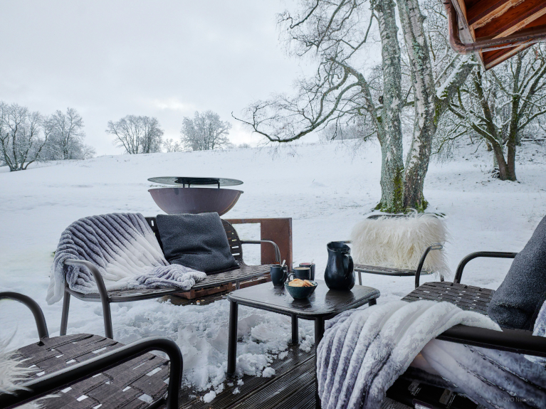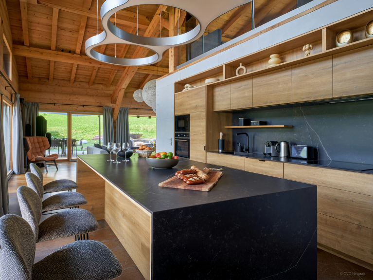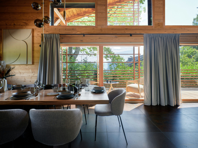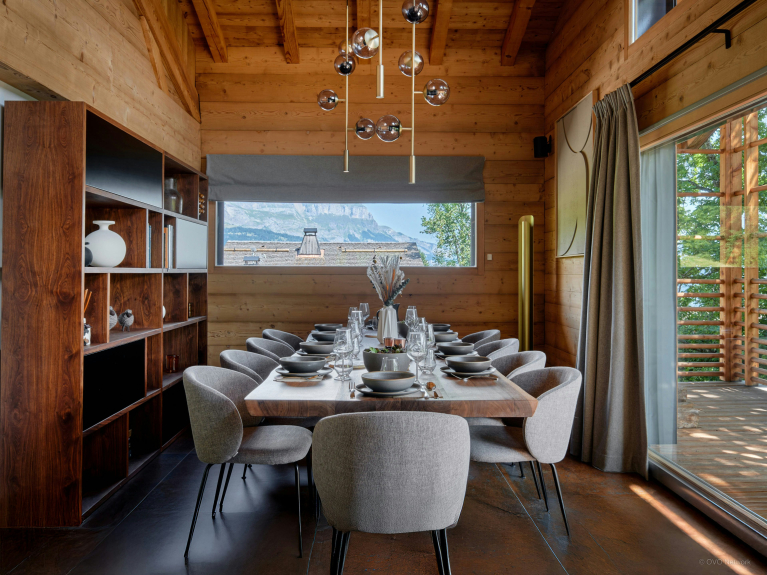 Depending on the weather, you can choose between two dining tables: one indoors and a second on a terrace. The terrace also has a sitting area, so you can enjoy the greenery and mountain views.