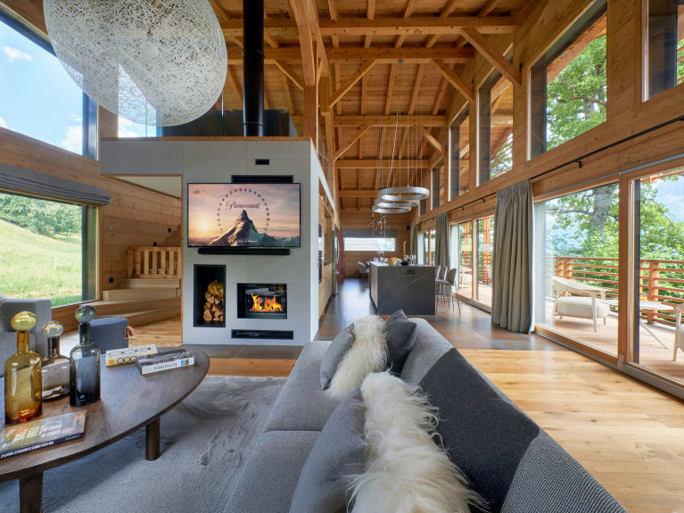 Chalet RevAlp also offers a sauna, a fully-equipped gym, laundry facilities, a ski room with boot dryer, and a double garage with electric charging station. Outdoor parking spaces are also available for additional vehicles.