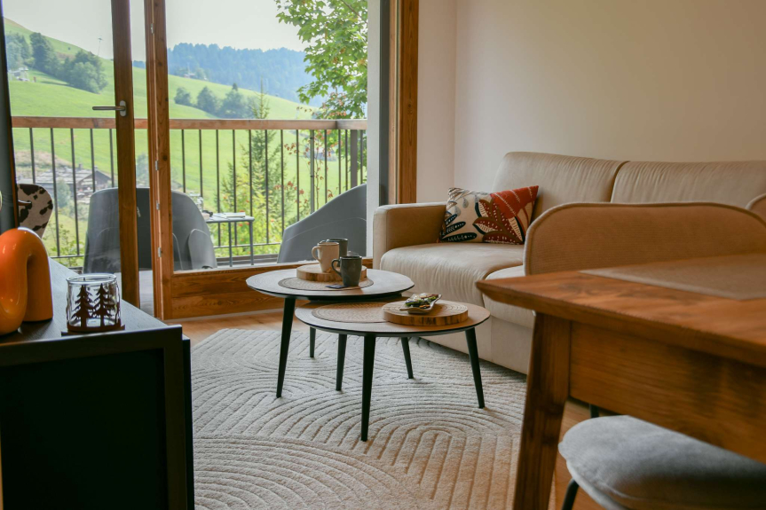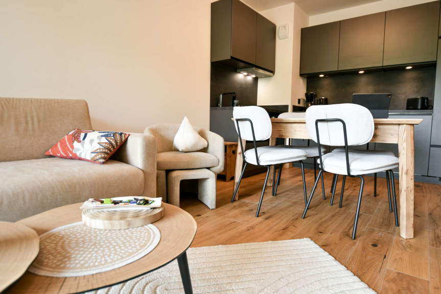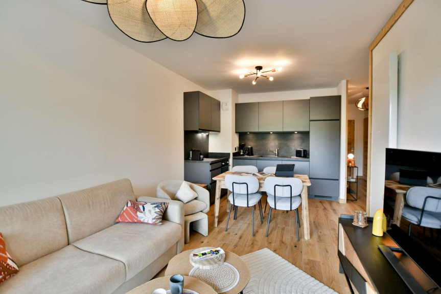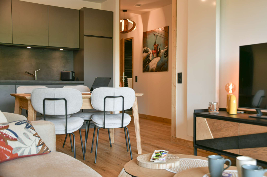 This 2-bedroom cocoon with 2 double beds welcomes you into a cozy atmosphere, ideal for recharging your batteries after a day on the slopes.