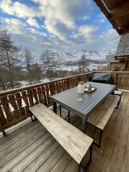 Pleasant furnished terrace (table and barbecue) with unobstructed, panoramic mountain views,