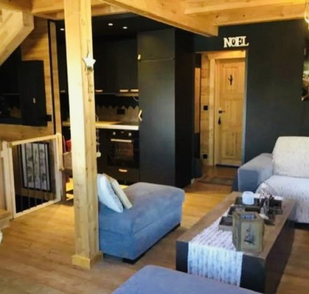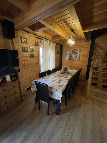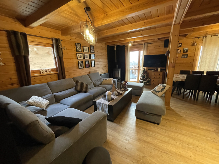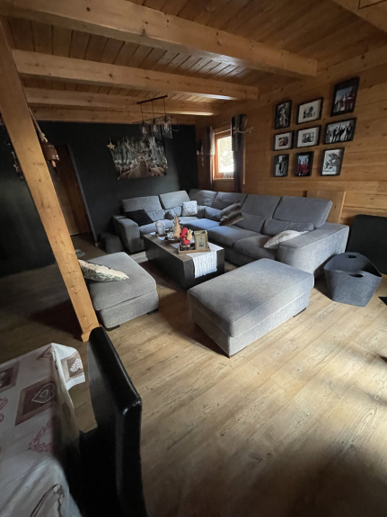 Carefully decorated over 3 floors, our chalet features a 35 m2 living room with wood-burning stove and XXL sofa, 5 bedrooms, 2 bathrooms and a large terrace with panoramic mountain views.