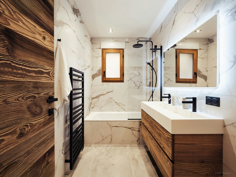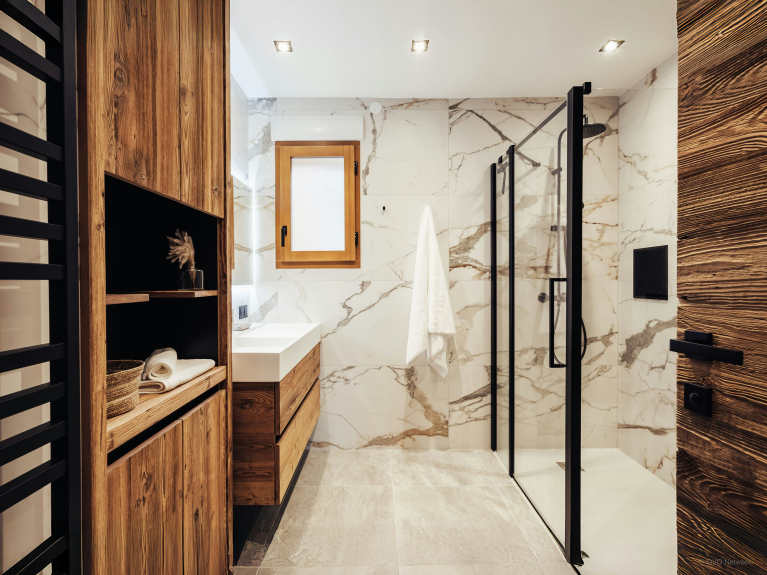 A separate ski room, with washbasin and heated boot dryer, lets you return to the comfort of the chalet after a day on the slopes. Washing machines and tumble dryers complete Chalet Ritord's functional facilities, while a covered garage and outdoor parking space are available for your vehicles.