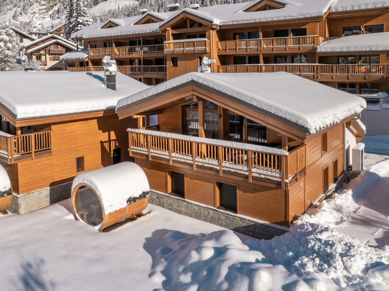 Finally, in the garden, the barrel sauna promises timeless moments of well-being, a real invitation to relax facing the Vanoise massif.