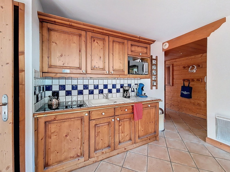 This residence, located at the entrance to the resort, captivates with its traditional Savoyard style. Come and discover its functional apartments, relaxation area with swimming pool, sauna, hammam, fitness room, ski store and free shuttle service to the resort center, 1km away.