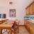 Open-plan kitchen equipped with 4 ceramic hobs, hood, fridge, microwave, mini-oven, dishwasher, coffee maker, toaster, kettle.