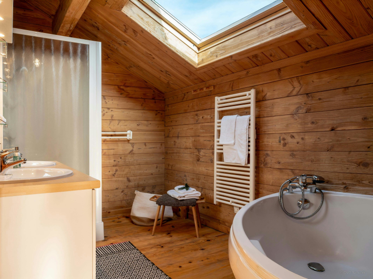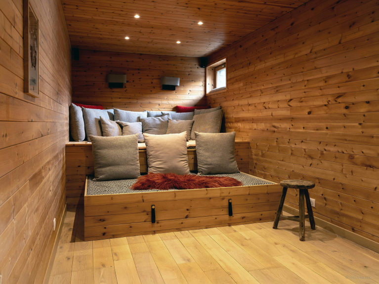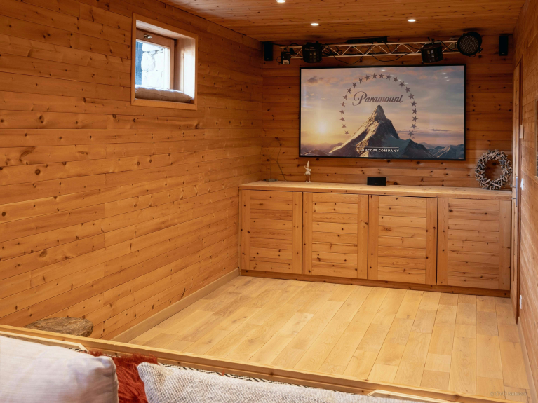 We particularly appreciate the diversity of atmospheres offered by this chalet. Its wellness area, featuring a sauna and outdoor Nordic bath, will be a true refuge after a day of activities. The large-screen cinema will liven up evenings and rainy days, while the spacious lounge is the perfect place to gather around a roaring fire.