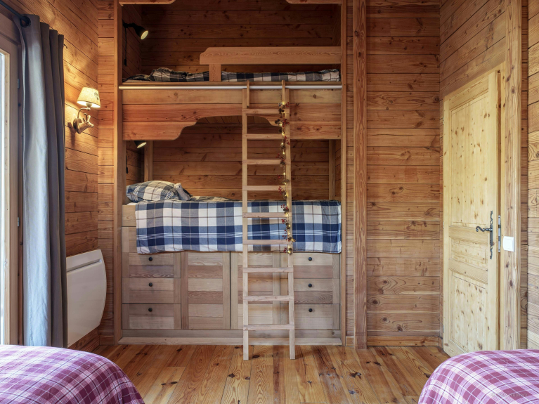 The rooms under the roof offer a warm ambience, especially the dormitory, designed for four children or teenagers. The chalet has a good ratio between bedrooms and bathrooms/toilets.