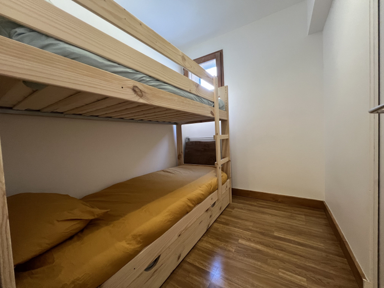 - A closed mountain area with 2 bunk beds,