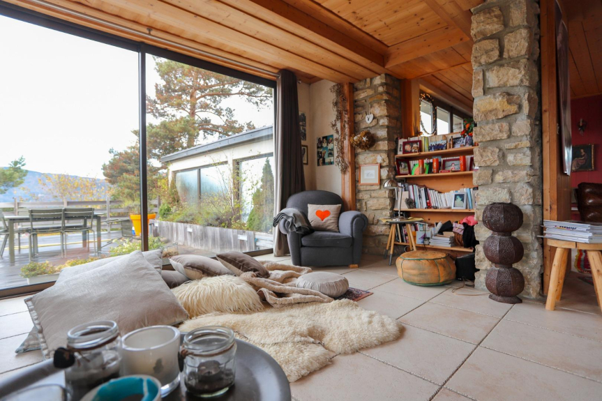 You'll be charmed by this montain home with a panoramic view. Built on to hellside rocks it is situated with in walking distance of the village and offers the liberty of countless hiking trails at its doorstep. Spacious and tastefully decorated, with several terraces, outdoor kitchen and a beautyfull swimming pool (3*10) over looking rock gardens. You'll be seduced immediatly !