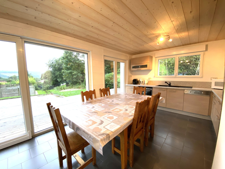 Clasificación 4 * Capacidad de acogida: 10 personas + kIt Baby completo (2 camas, trona, bañera, mesa con langer) posibilidad de acogida 15 personas alquilando los 2 chalets, el "Gran sorbier" y "el pequeño sorbier".