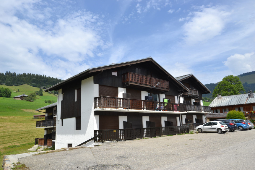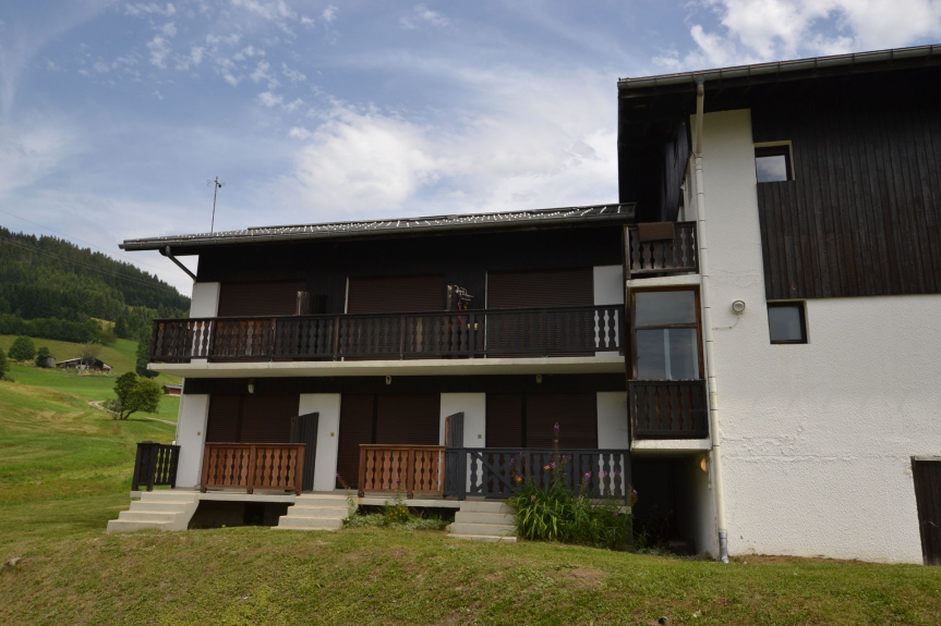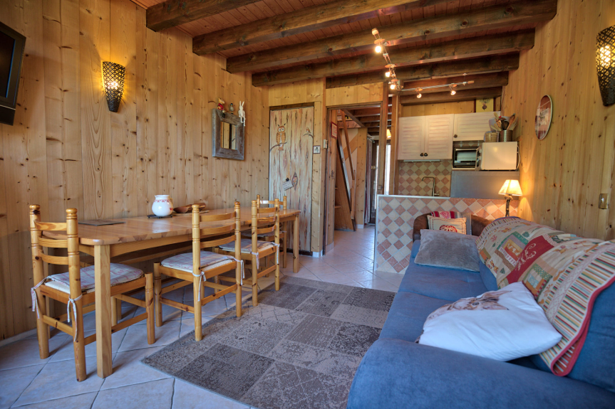 Piso dúplex para seis personas con una superficie de 32 m². Situado en la primera planta con un balcón orientado al oeste y con vistas al Mont Charvin.
