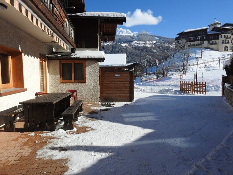 INVIERNO: la terraza se limpia de nieve y dejamos una zona cubierta de nieve para que los niños puedan revolcarse en ella y hacer muñecos de nieve.