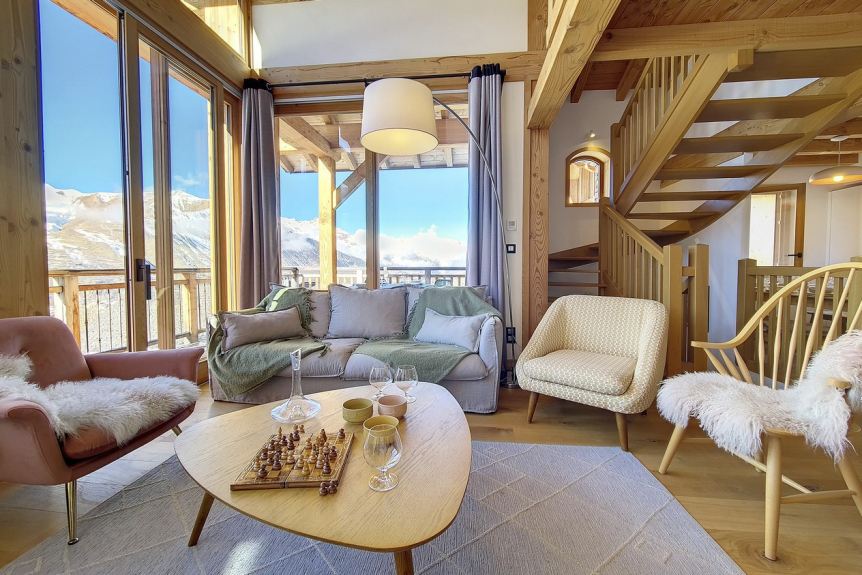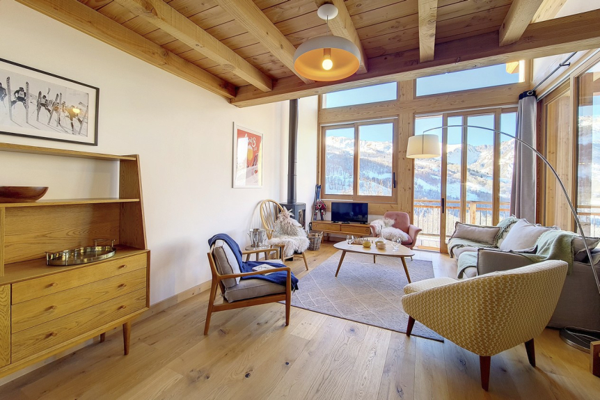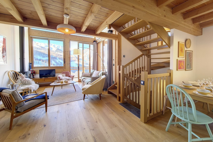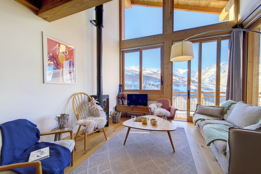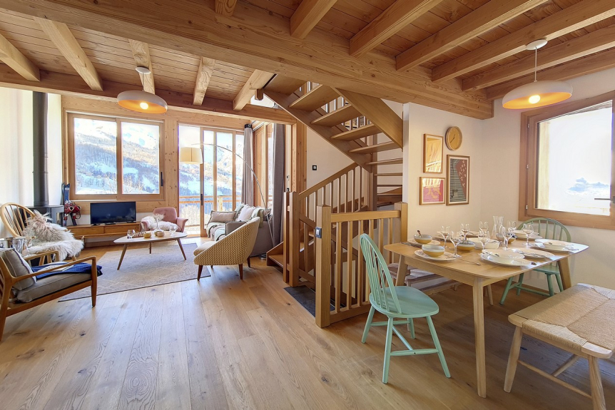 Suavidad pastel alrededor de la estufa de leña. El Chalet CACHETTE es ideal para su reunión familiar (90m² para 8 personas). A tan sólo 2 minutos a pie de las pistas (la sala de esquí está directamente en la pista), este soleado chalet ofrece todo el confort moderno y al mismo tiempo el ambiente de capullo de la montaña.