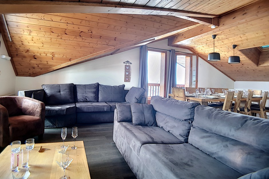 Precioso y amplio piso con 6 habitaciones de 130 m² para 12 personas. Se encuentra en la 2ª planta de la residencia y tiene dos balcones: uno al suroeste y otro al noroeste. (Cristaux 2)