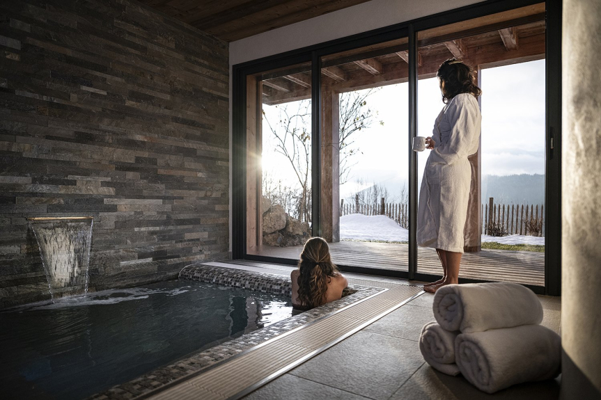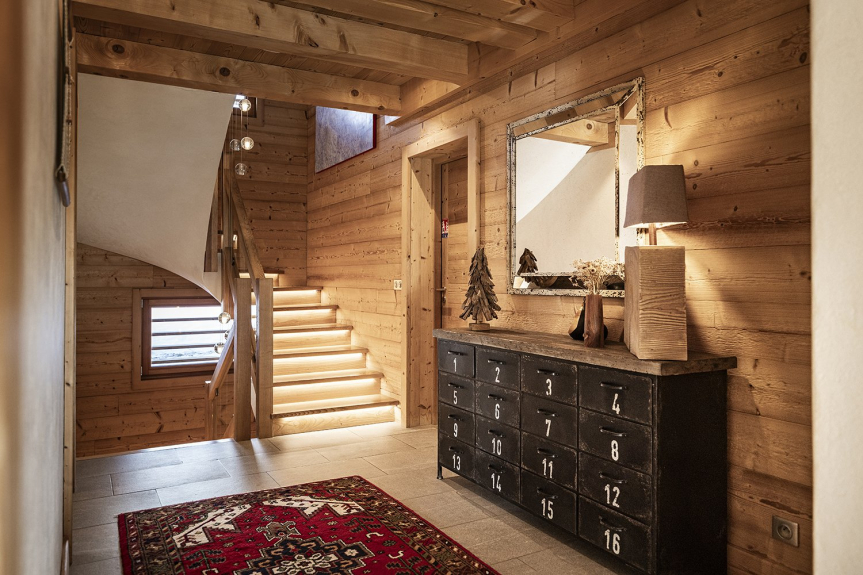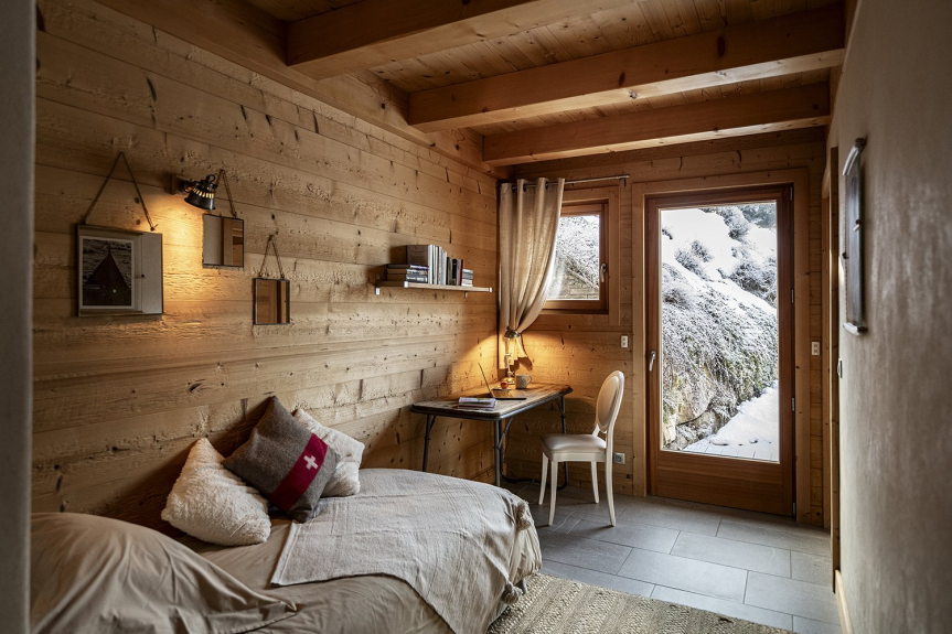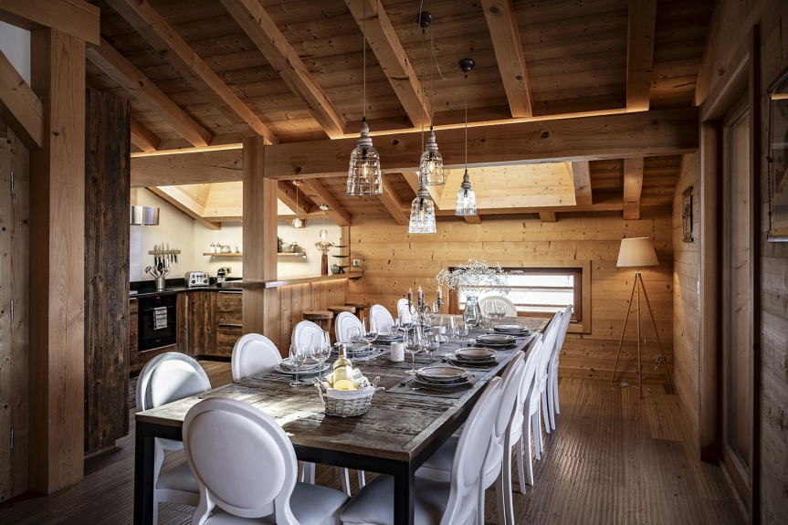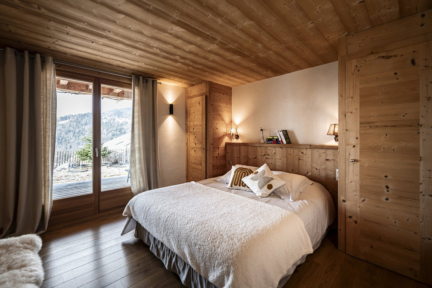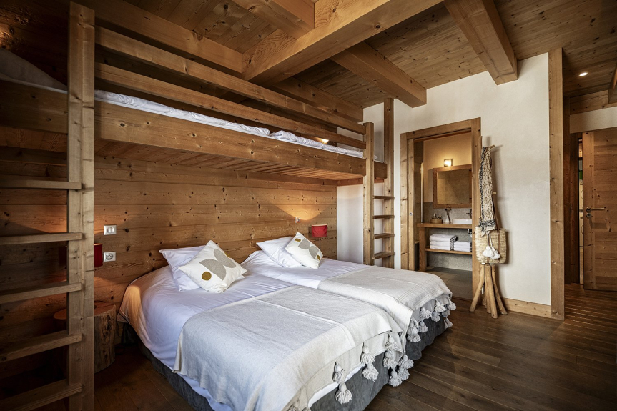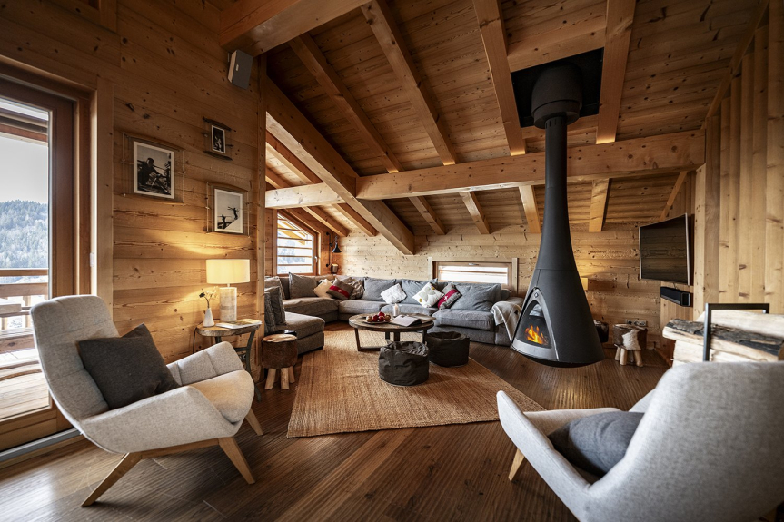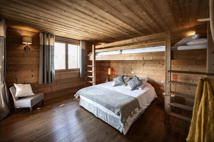El Chalet Celeste dispone de 5 habitaciones, cada una de ellas con balcón o terraza, todas ellas con excepcionales vistas a los Alpes. Todas ellas cuentan con ropa de cama de alta calidad, un televisor de 46', almacenamiento incorporado y un baño privado. La zona de bienestar incluye un jacuzzi de 8 plazas, una sauna de 6 plazas y una ducha. Equipado con una sala de esquí con calefacción, el Chalet Celeste ofrece acceso directo a las pistas. En la planta superior, bajo un magnífico tejado de mansarda, se encuentra la zona de estar con una cocina totalmente equipada, una sala de estar y un salón con una chimenea central suspendida y pivotante. Hay una magnífica terraza cubierta con una mesa para 15 personas y una zona de estar. El Chalet Celeste también dispone de 2 plazas de aparcamiento en un garaje cubierto en el mismo nivel, que da acceso directo a la zona de estar.