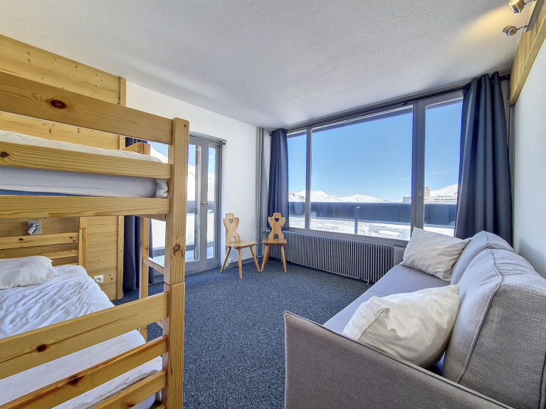 Dormitorio 2: 1 litera y 1 sofá cama con cama nido extraíble con acceso al balcón con vistas al oeste