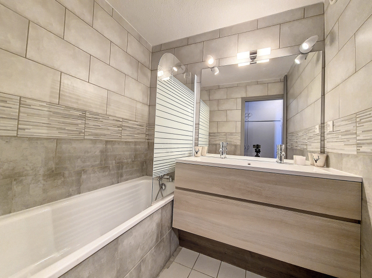Baño con bañera y lavabo.