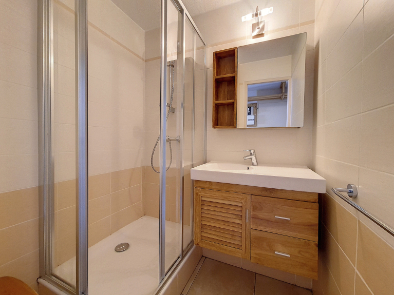 Muy bonito y totalmente renovado piso de 2 habitaciones 38m² para 5 personas, situado en el 1er piso con ascensor y un balcón orientado al sur.