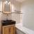 Cuarto de baño con bañera y secador de pelo de pared.
