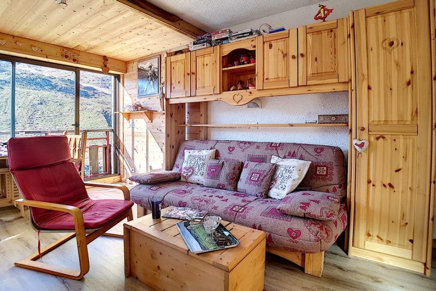 Salón: 1 sofá cama para 2 personas. Equipado con televisión, reproductor de DVD y radio-CD.