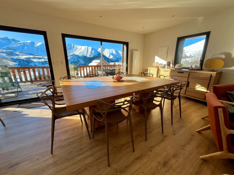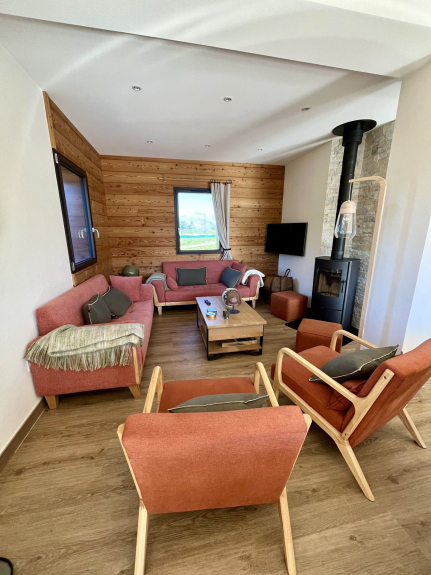 Además: una sala de esquí con un secador de botas, 1 portaesquís, 2 bancos y 2 soportes ? Una sauna al aire libre y un fácil aparcamiento junto al chalet para 4 coches.