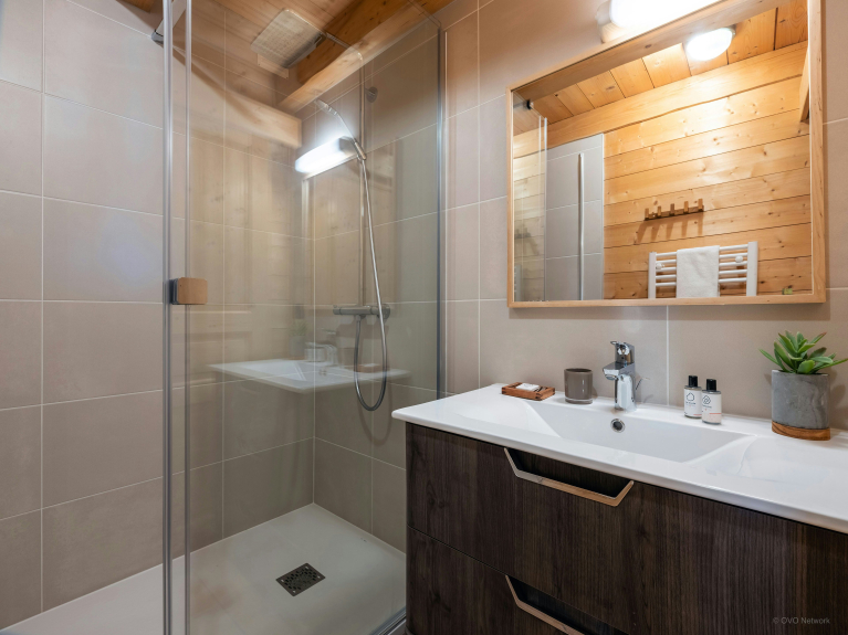 Con sus cuatro habitaciones dobles y sus cuatro baños, el piso Le Barn, calificado con 3 estrellas, es el lugar ideal para que dos familias compartan unas vacaciones en la montaña, con una capacidad total de doce personas.