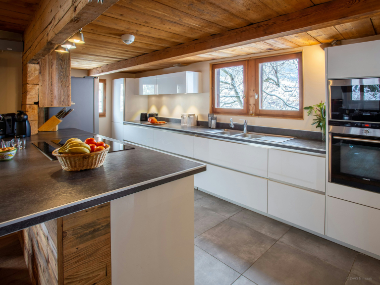 Nueva cocina, nuevas chimeneas, espacios exteriores rediseñados... También se ha renovado el balcón delantero del chalet y se ha instalado un nuevo suelo de parqué en las zonas comunes. En el nivel de la piscina, los grandes ventanales ofrecen vistas sin obstáculos de los alrededores.