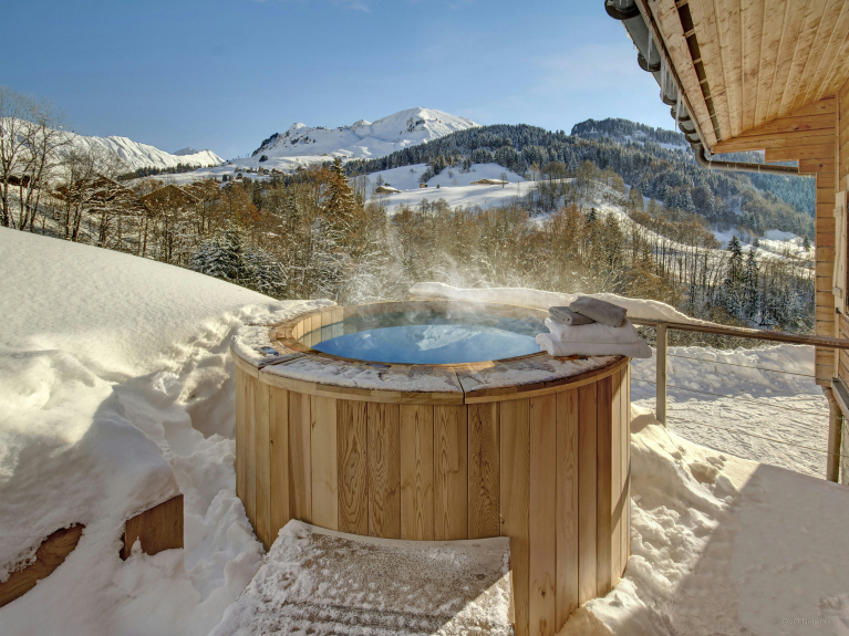 La propiedad ofrece magníficas vistas a la montaña, que se pueden disfrutar desde el baño nórdico exterior.