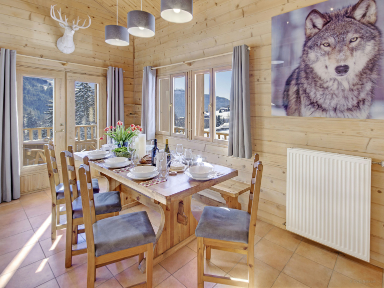 A pocos minutos del chalet, el pueblo de Chinaillon tiene algunos bares y restaurantes estupendos. Si prefieres quedarte en el chalet, la cocina totalmente equipada y la amplia zona de comedor son un lugar ideal para disfrutar de las comidas; también hay máquinas de raclette y fondue.