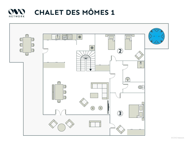 Con capacidad para 8 personas, el Chalet des Mômes está distribuido en 3 plantas.