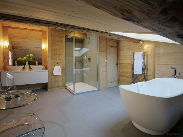 El gran cuarto de baño de la segunda planta cuenta con una hermosa bañera, un lavabo doble y una enorme ducha. Por último, una habitación doble ofrece fantásticas vistas del Etale, mientras que un dormitorio ofrece 4 camas individuales o 2 camas dobles, según la configuración deseada. Excepcionalmente, todas las habitaciones están equipadas con alfombras extra suaves, ¡para un mayor confort!
