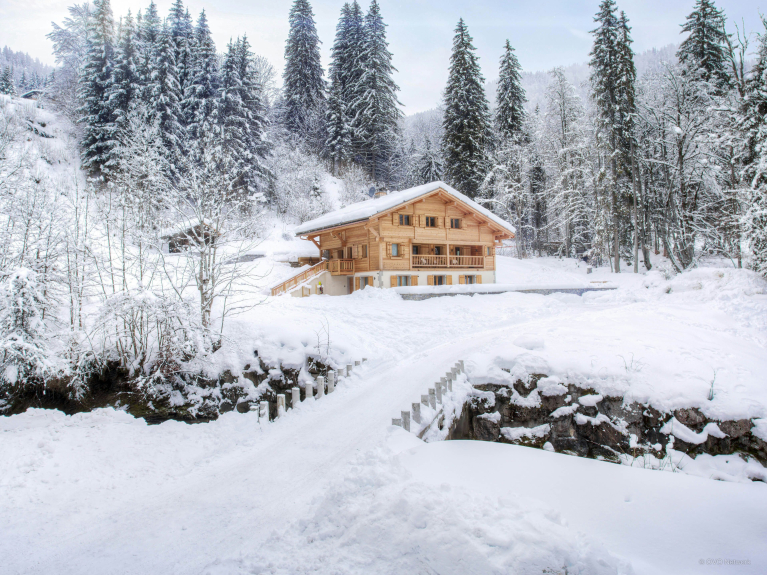 El Chalet Ribereño está rodeado de bosque y bordeado por dos arroyos. Tendrá la sensación de estar en medio de la nada, cuando en realidad está al lado de la góndola y a sólo 200 metros del corazón de La Clusaz.