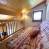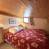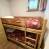 - Lado de la noche: un dormitorio con literas (2x90), arriba: un dormitorio con una cama doble (140) y televisión, entresuelo con un sofá cama doble (140). Ropa de cama con edredones.